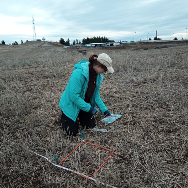 April Hersey is a first-year master’s student co-advised by Dr. Robin O’Quinn and Dr. Justin Bastow in the Biology Department at Eastern Washington University. EWU is home to a 120-acre Inland Pacific Northwest prairie restoration site, where April’s research will bring together native plant restoration and regenerative agriculture techniques. Plant communities on prairie restoration sites are typically less diverse than those of prairie remnants, in part because of difficulty reestablishing forbs (non-grass herbaceous plants). April’s research focuses on whether restoring the soil microbial community on test plots on EWU’s restoration site improves the diversity of forbs that establish after seeding. To influence soil community composition, April will use compost tea: liquid compost extract amended with a microbe food source such as molasses and aerated to multiply the microorganisms from the source compost. April will document not only native plant abundance and biomass after compost tea treatment, but also soil bacteria, fungus, and nematode community composition before and after compost tea application. The results will show the extent to which compost tea changes the soil and plant communities on the restoration site. If this approach successfully increases forb diversity, it may be an inexpensive and scalable option for an integrated community ecology approach to ecosystem restoration.