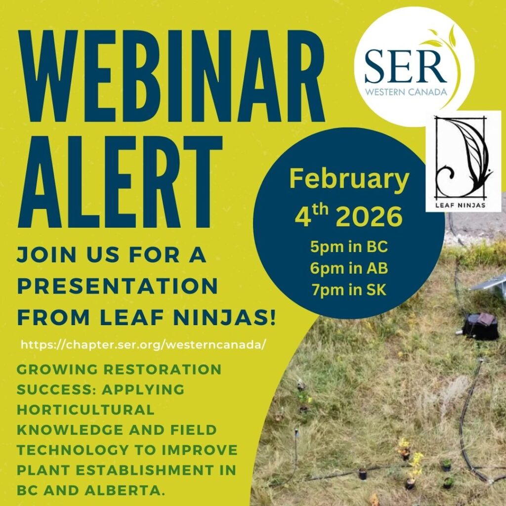 Register to attend the webinar through Zoom on February 4th, 2026! Hear from leaf Ninjas about their work in restoration! Their presentation will focus in on “Growing Restoration Success: Applying horticultural knowledge and field technology to improve plant establishment in BC and Alberta.”